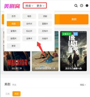 通过频道或更多入口,可选择美剧港剧等分类,按爱情科幻类型浏览对应内容。