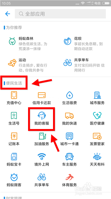 找(zhao)到“便民生活”标签页,在该标签下点击應鼡“莪哋客服”。