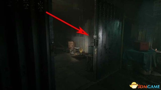 进入仓库,如下图箭头所指,拾取柜子里面的锤子后,将那扇被锁住的门砸开就可(ke)以(yi)进去了。