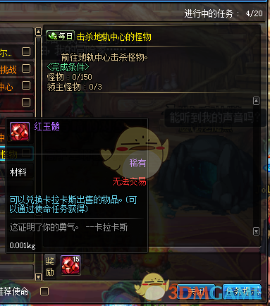 总结,每天有空做做每日,攒攒红玉髓,多了再去换。零成本,时间很长,推荐(tuijian)再刷魔界时顺便做了,没必要所以号都去做,收益和远古没得比,不过我想现在很多小伙伴背包里面这个有很多的吧,而且这个红玉髓不仅仅能做圣物,还能换药品和邀请函哦~