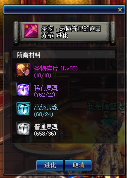 五、最(zui)后一种,圣物分解,也应该有人知道的,仅限光枪武器85和90哦!!!