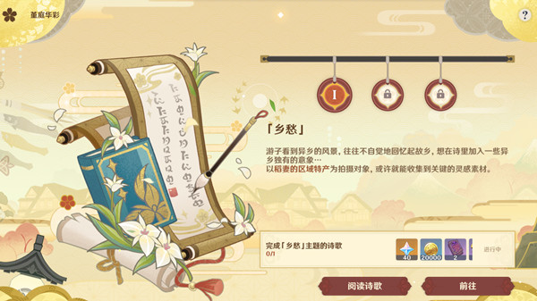 最新开放的原神月章星句的主题是乡愁,需要player以稻妻的区域特产为拍摄对象收(shou)集灵感素材(sucai)。