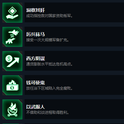 地图上的随机事件,会讓你选择2只蓝军并且在2年后所有蓝军撤离,或者培训2只绿军机率加腐败,或者加支持度,建议选择2只绿军