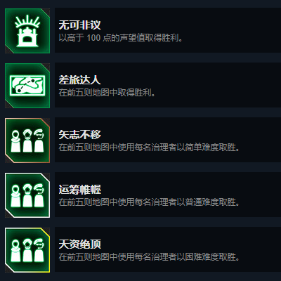 在全部地图中使用每名治理者在普通难度取胜。