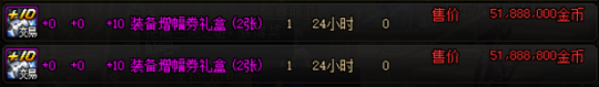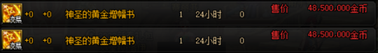 装备增幅道(dao)具(ju)有+10装备增幅券和神圣的黄金增幅书。+10装备增幅券2个5100w,增幅书4700w。