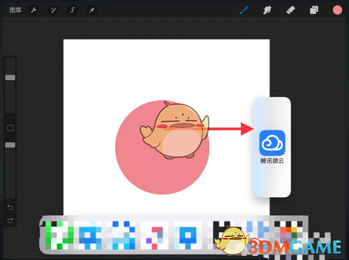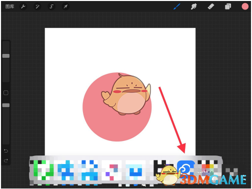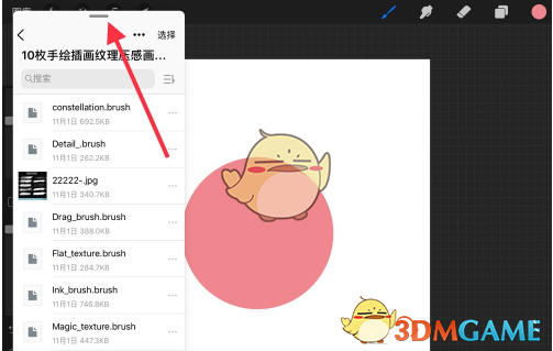 3、最(zui)后(hou)我们(women)松开就可以看到右侧有(you)一个小屏幕,就是分屏了,然后找(zhao)到我们(women)需要导入的笔刷;