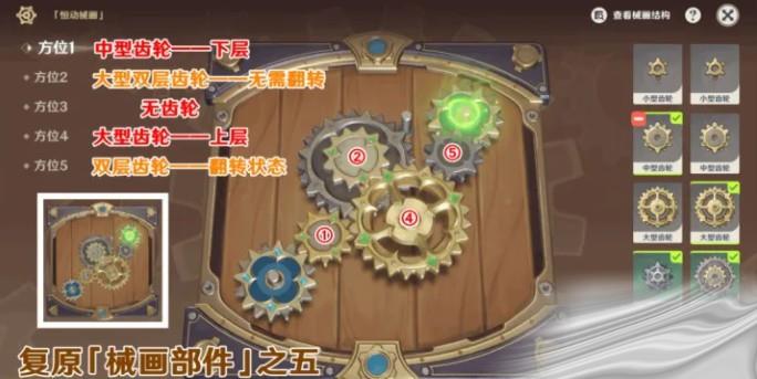 原神复原械画部件之五一览第五关需要玩家正确复原机械部件的方位,下面有具体内容大家可以看看。