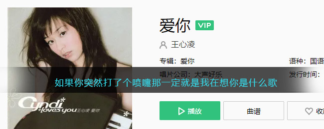 如果你突然打了个喷嚏那一定就是我在想你是哪个歌(如果你突然打了个喷嚏,那是因为我在想你)她的一些主打歌曲再次被大家传唱,“如果你突然打了个喷嚏那一定就是我在想你”是王心凌的演唱的《爱你》,如果你突然打了个喷嚏,那是因为我在想你满满的回忆杀,下面是3DM小编给大家带来的王心凌爱你歌曲歌词试听地址分享,这里还有更多内容可以看看下面的介绍。