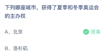 下列哪座城市,获得了夏季和冬季奥运会的主办权(下列哪座城市,获得过夏季和冬季的奥运会的主办权)获得了夏季和冬季奥运会的主办权目?这是今日的蚂蚁庄园小课堂的问题,很多玩家都比较关注这个话题,接下来就让小编为大家详细介绍一下,下面有具体内容大家可以看看。