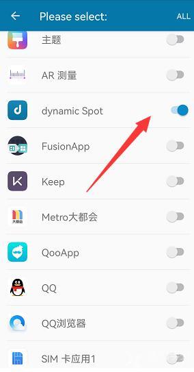 3、我们找到dynamicSpot,将后面的按钮开启。
