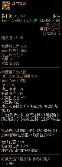 dnf100爆裂红焰改版属性是什么?