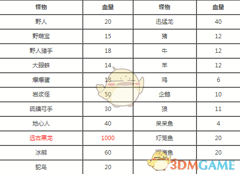 迷你世界怪物血量汇总