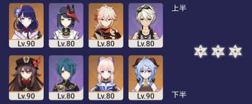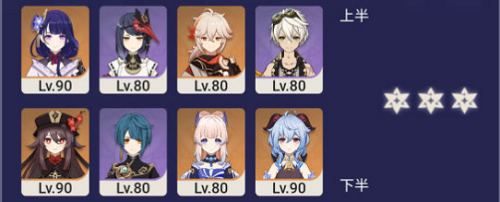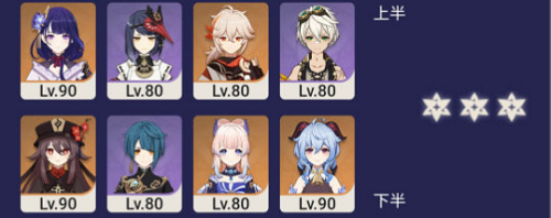 3、下半由于有火属性冰属性怪,11-3火使徒和雷使徒,因此考虑带火沅嫊和冰沅嫊兩個c来打,我选择(xuanze)用胡桃和甘雨。