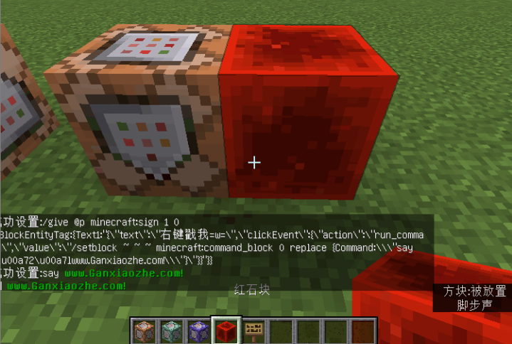 受数据值影响,被放置的命令方块中包含了指令say u00a72u00a7lwww.Ganxiaozhe.com
