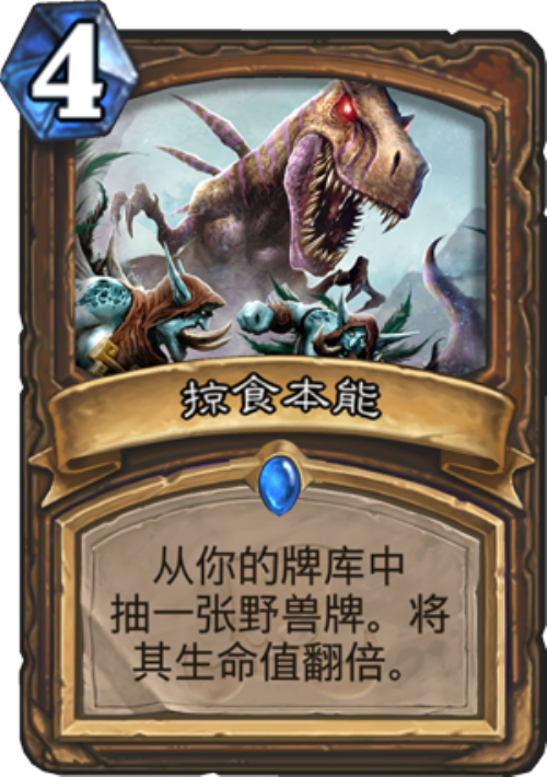这张牌虽然是一个定向检索,但代价有点大了,目前德鲁伊值得检索的牌就是哈多诺克斯了,但大家都巴不得这张牌的生命越低越好,增加他的生命反而是画蛇添脚啊!至于其他的野兽,还需要打出去才有效果,意义也不是很大。