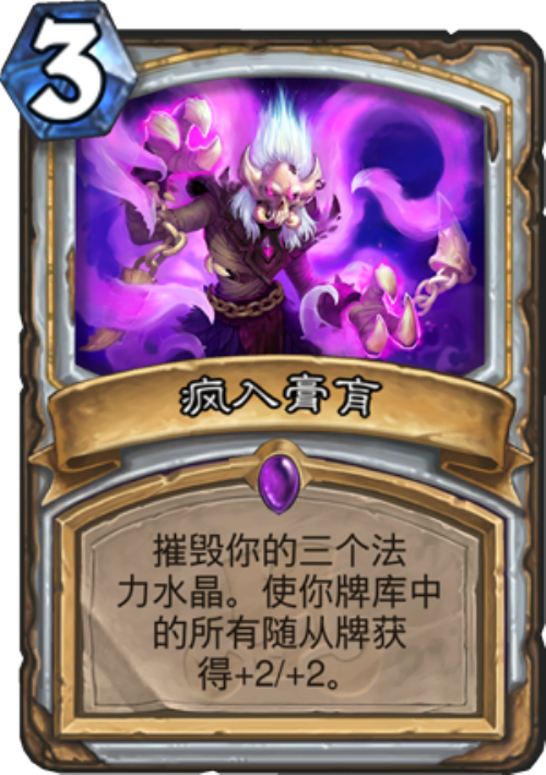 术士的单解,威力(power)还是很强大,直接消灭随从,但这个费用就恐(kong)怖(bu)了,在铺场卡组中有点用,感觉也没有王师傅说的这么差,毕竟治疗园等卡组面对一个大屁股嘲讽能用2,3费解掉还是比较赚的。