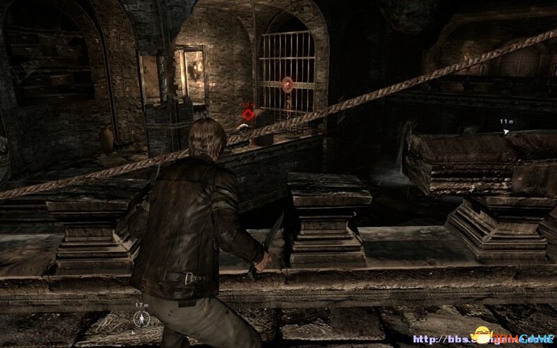 开场动画结束,Leon完美的被西蒙斯陷害成了谋杀总统的凶手,好吧,反正出来混总要还的,咱俩走着瞧。 開始在一条到处都是石棺的路上,里面有不少弹药,仔细搜索一(yi)下(xia),中途有1款转轮几关,冲刺途中按一(yi)下(xia)端枪键划过去即可,这里提醒一(yi)下(xia)有几个拿着燃烧瓶的僵尸别上去体术直接会烧到自己。