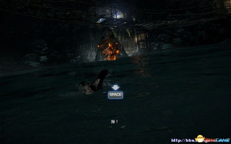 这里在鱼背上回出现4次固定的QTE在PC对应的:R+space,Space连打,转动方向,鼠标左键,任意难度都是这4个只是判定时间(shijian)长短的不通,打伤鲨鱼后被甩至下个水域,阴魂不散的鲨鱼还是会追得,艰难的52M啊,连打空格快速游动,鲨鱼一共追3次,第三次之前会有个被僵尸抓的小插曲,快速摆脱掉就好,上岸后开开门。