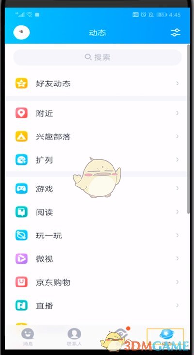 1、打开qq,点击(click)右下角的动态(dynamic)