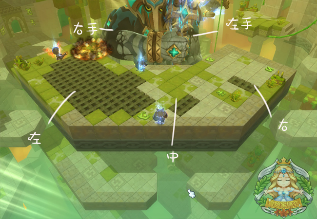 躲避方法:玩家需移动到右边或在左边最外部的方块上躲避该技能。