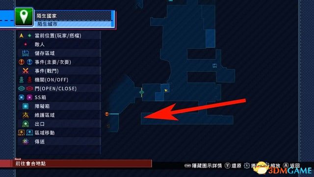 按ESC打开地图,如下图箭头所指,机关的位置就(jiu)在(zai)这里。