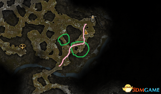 特别需要注意的是紫线,可以看到从祭坛到第一处卡怪点我中间我特意把紫线画得弯弯曲曲的,并不是说我画技不佳,实际上在把兽群往第一处卡怪点拉之前左右扭动一下屁股,边跑边打的话,有一定的机会在到达第一处卡怪点之前把兽群清理完,哪庅你接下来的输出时间就会多上几秒,这很重要!