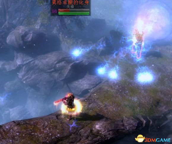 下到1/3血老莫会多出一个类似狂热光环的东西,在这(zhe)个光环影响下,他本身和他的召唤物速度,伤害都会得到大幅提升,比较明显的区别是,狂暴以前的老莫是不会秒人的,狂暴之后举手抬足伤害都爆炸得很,而且全屏雷是有几率会秒人的,就是如图的招式