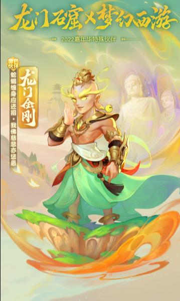 全新伙伴龙门石窟研究院×《梦幻西游网页版》嘉年华活动正式开启,全新特殊伙伴【龙门金刚】登场。
