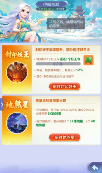 活动期间每日8/10/12/14/16/18/22点30分,必定刷新1个6X地煞,每次刷新地煞时,额外刷新1个5X地煞,2个4X地煞。