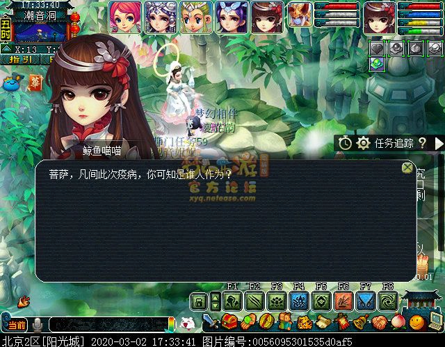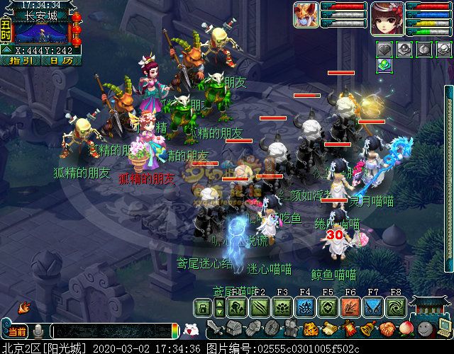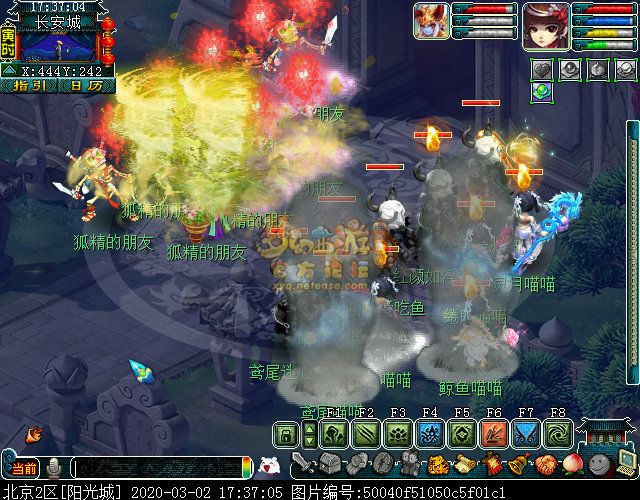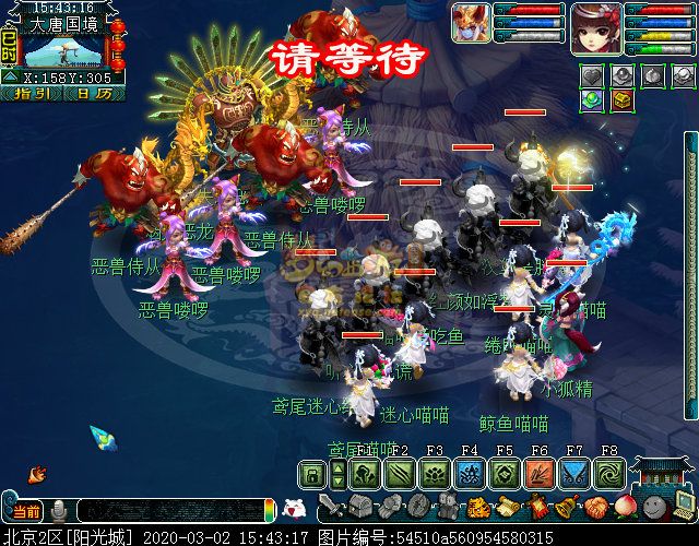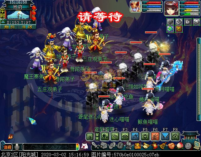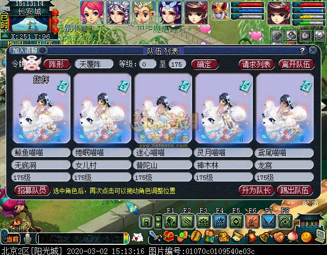 战斗里怪的门派是固定的,主怪两边的龙太子是龙宫,会龙卷龙腾和龙吟;最两边的骨精灵是魔王寨,会三昧真火和飞砂走石;前排中间两个舞天姬是普陀山,会五行法术和紧箍咒;前排两边两个神天兵是五庄弟子,会日月乾坤和烟雨,也会生命之泉。战斗比较简单,对面怪都(du)可(ke)被封印,基本两回合可结束。