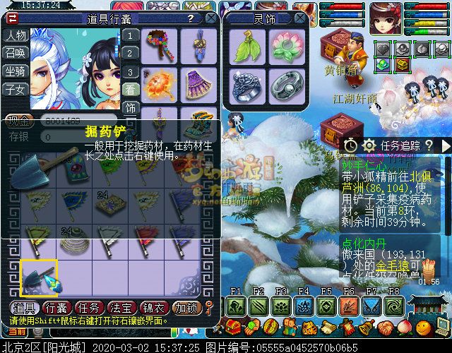 该任务会给你一把道具掘药铲,走到系统提示的坐标处使用掘药铲有可能直接挖到药材,也有可能挖出妖怪。
