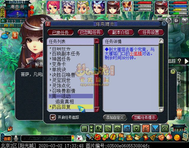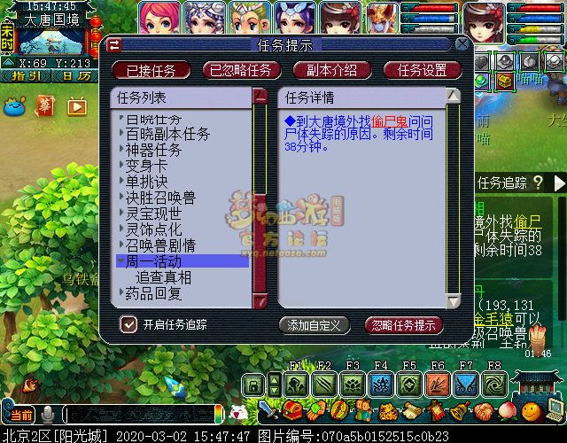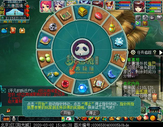 奖励有如意丹、兽决、金银锦盒、宝石、超级金柳露、月华露、超级净瓶、宝图和星辉石,还是挺丰富的吧。每完成10个小任务转完转盘后还有个追查真相的后续,按照提示去找对应的NPC。
