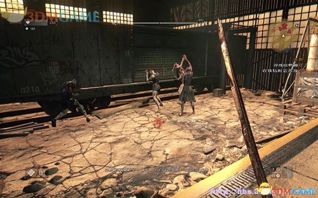 进到车站仓库,看到一只车厢外围着感染者,里面传出拉希姆的呼喊声。