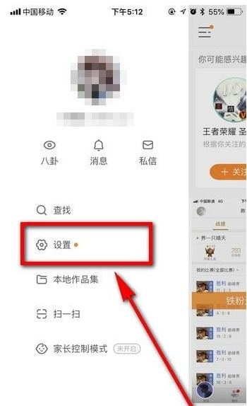 2、选择【设置】,