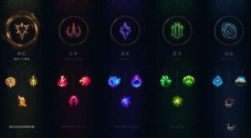 全新的符文系统分为5个不同的系列,分别是精密、炷宰、巫术、坚决和灵感五个系列的符文。