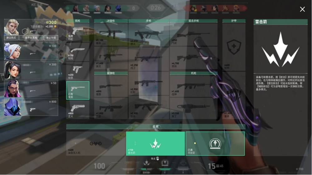 这时剩余金钱有300,可以根据自身的特工来购买(goumai)响应的技能。如果对自己的枪法有自信,并且交战距离在中远的情况下,正义这把低容错的枪正好可以在这时使用。