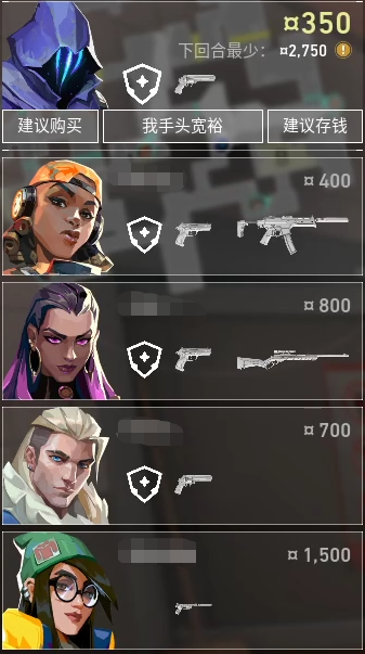 这里的重甲可以换成轻甲,毕竟下一局对面几乎都是小枪,轻甲也有用武之地。当然ECO不是完全不用钱,可以购买(goumai)一些便宜的枪,比如只有150的短炮,这把枪性价比极高,虽然只有弹匣内只有两发,但是近距离一枪一个,会烟雾技能和唯一技能的特工可谓是专属武器,比如捷风。