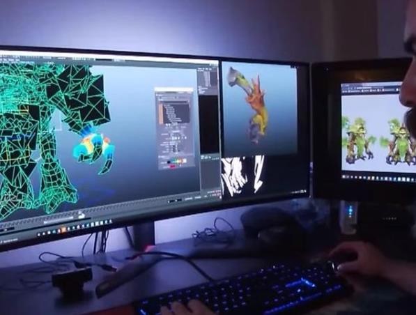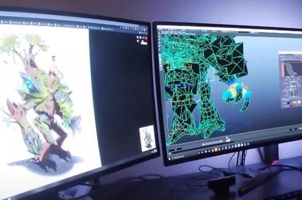 这个(ge)消息来自暴雪自己发布的视频,里面有一段员工工作(Work)的景场,一位美术设计师正在用他的电脑,为新坐骑建立特效和动(dong)作(zuo)。我(wo)们可以看到大树坐骑的整体外观:棕色的枝干,翠绿的叶子,肩膀有符文特效,背后是一簇大树枝用来作为鞍座。整体看上去,这个(ge)坐骑跟Dota2的英雄树精卫士有几分相似,不过(guo)细看是完全不(bu)同的。整(zheng)个(ge)坐骑的模型骨架并非全新搭建,而是采用(use)游戏里一些巨型树人的骨架,与德拉诺的戈隆很像。