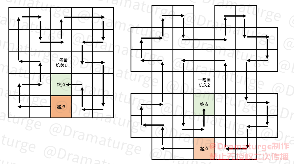 回到恒常机关阵列后面,有两个朴实的一笔画机关(从起点不回头地走到终点):