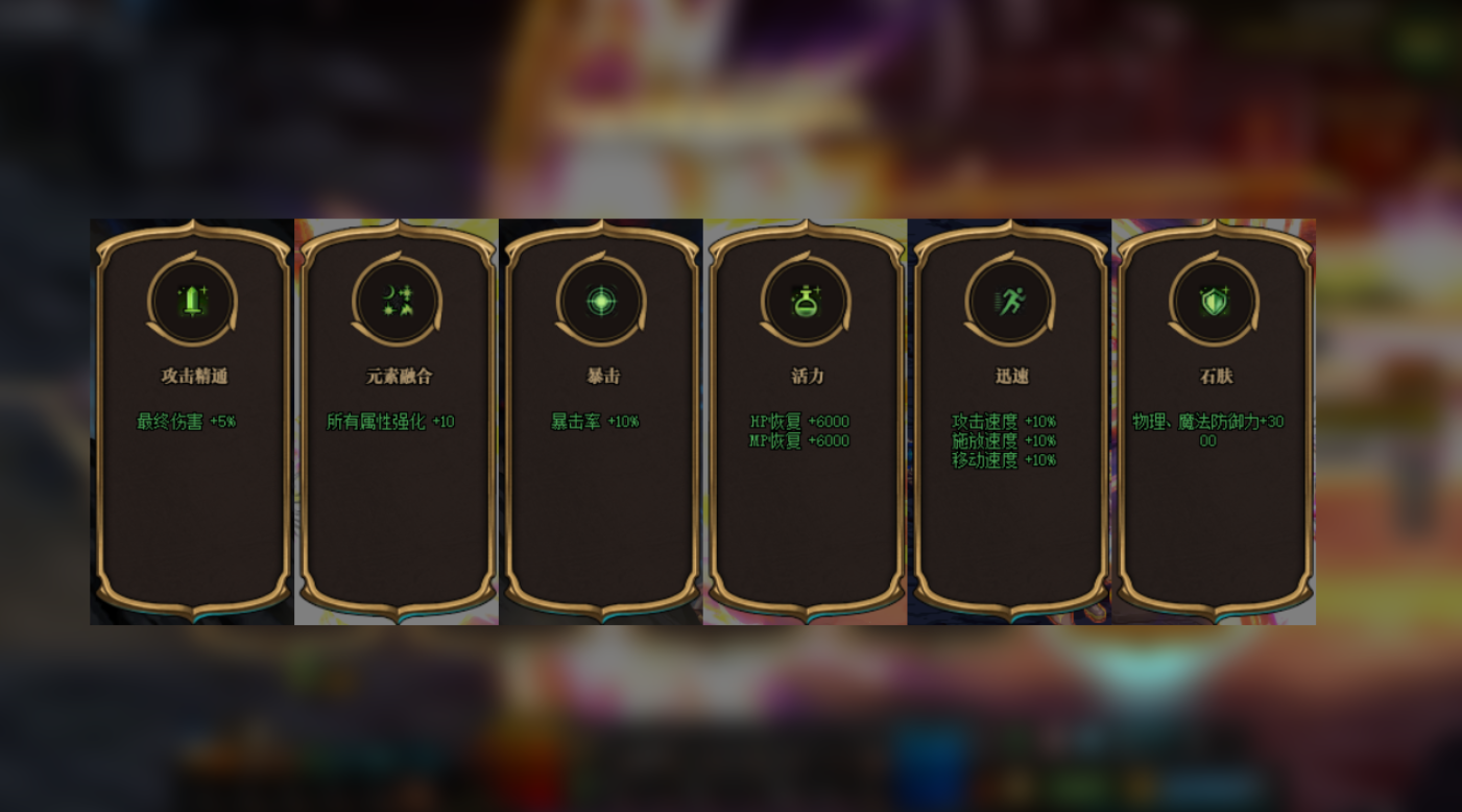 防御力在这一个模式中基本上用途不大,特别是无CD范围技能流,怪物基本上不能近身,而三速不加主要是赌霸域装备,恢(hui)复(fu)不加是赌天堂舞姬,但如果血量很低的情况下不出天堂舞姬,适当的增加一些活力是保命的关键。最终伤害和属强建议等比例选择,最终伤害堆到100%就足够。