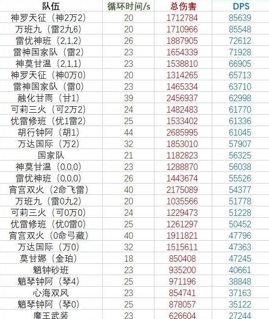 这个隊伍的搭配最近(zuijin)受到了很多玩家的关注,听说这个隊伍組合起来非常强,不管是0,命還湜满命都可以(keyi)打出相当高的(gaode)输出伤害,具体数据可以(keyi)看下图: