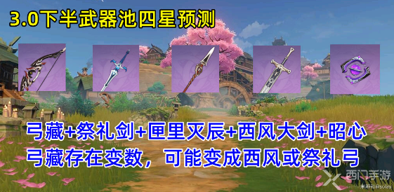 3.0下半卡池武器:弓藏+祭礼剑+匣里灭辰+西风大剑+昭心