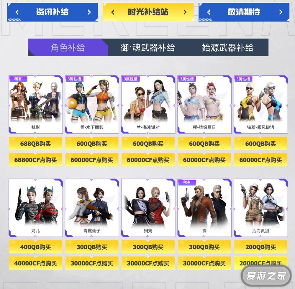 魅影、锋等角(jue)色(se)直售,可用Q币或CF点购买。