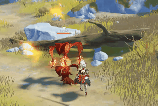 技能大体与冰霜骗骗花相同:怪物形成护盾的前摇动作、护盾持续时长(6s)、角色破盾技巧及破盾后怪物的眩晕时间(16s)。需要注意的区别点是:炙热骗骗花最佳的破盾元素是水元素,其次若玩家未破盾,炙热骗骗花產生的火会从花蕊出抛射12枚火焰弹,落地后会產生小范围的圆形AOE(技能躲避技巧与冰霜骗骗花相同)。