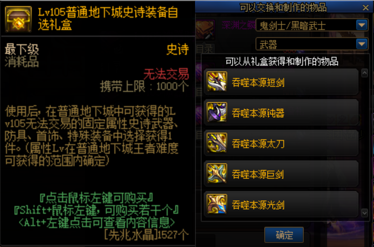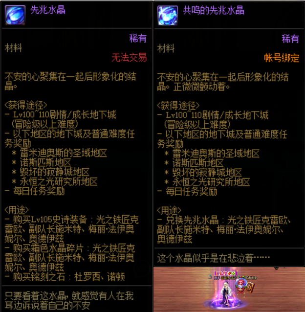 主要用途是在高级(advanced)副(fu)本频道相关NPC商店,花费1527个先兆水晶,兌換105级自选史诗礼盒。