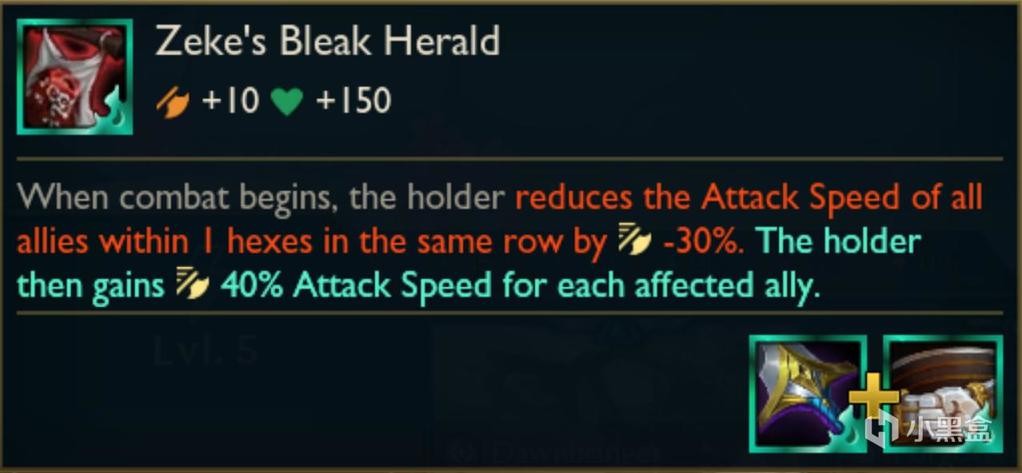 黑旗就很有意思了,效果是吸收同排附近格右方棋子的攻速,每吸收一个,就给装备者提供40%的攻击速度,