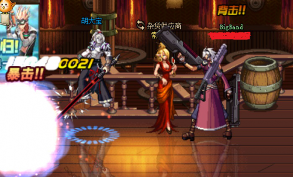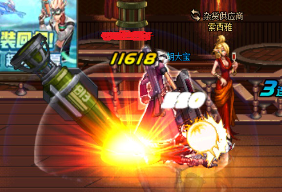 这里有一个細節,男枪炮师的加农炮可以蓄力,连招(lianzhao)一定不要蓄力时间过长以免对手落地;另外,还可以利用向上的格林机枪打到角落后,普通攻击加膝撞循环连招(lianzhao),直到蓝条保护,掌握好节奏便可轻松做到。