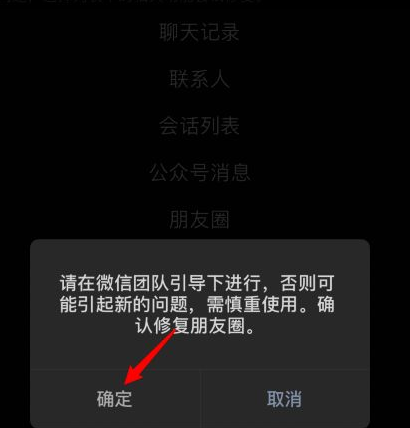 4、点击后会出来一个提示框,选择(xuanze)确定,确定后就会显示已完成修复,需(xu)要(yao)重启微信。