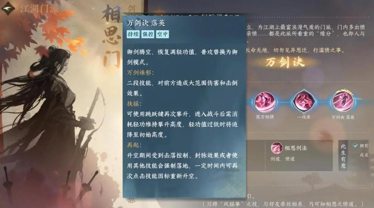 万剑诀是门派的镇派之宝,能够(gou)在释放该技能时施展出大范围性(xing)的伤害以及击倒效果。