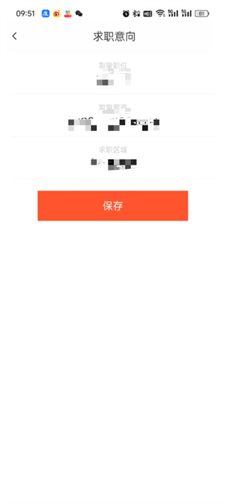 4、最后点击过后在求职意向的页面中修改好之后点击【保存】即可;